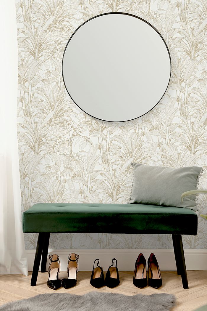 Papel Tapiz vinílico, texturado. Diseño botánico con hojas sobrepuestas de manera sutil.