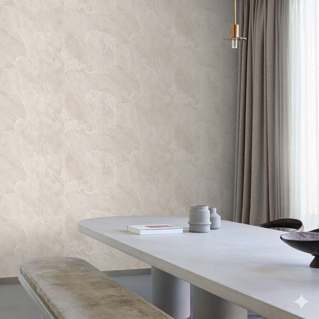 Papel tapiz vinílico en doble formato, diseño con una textura tipo terra con ligeras vetas alargadas
