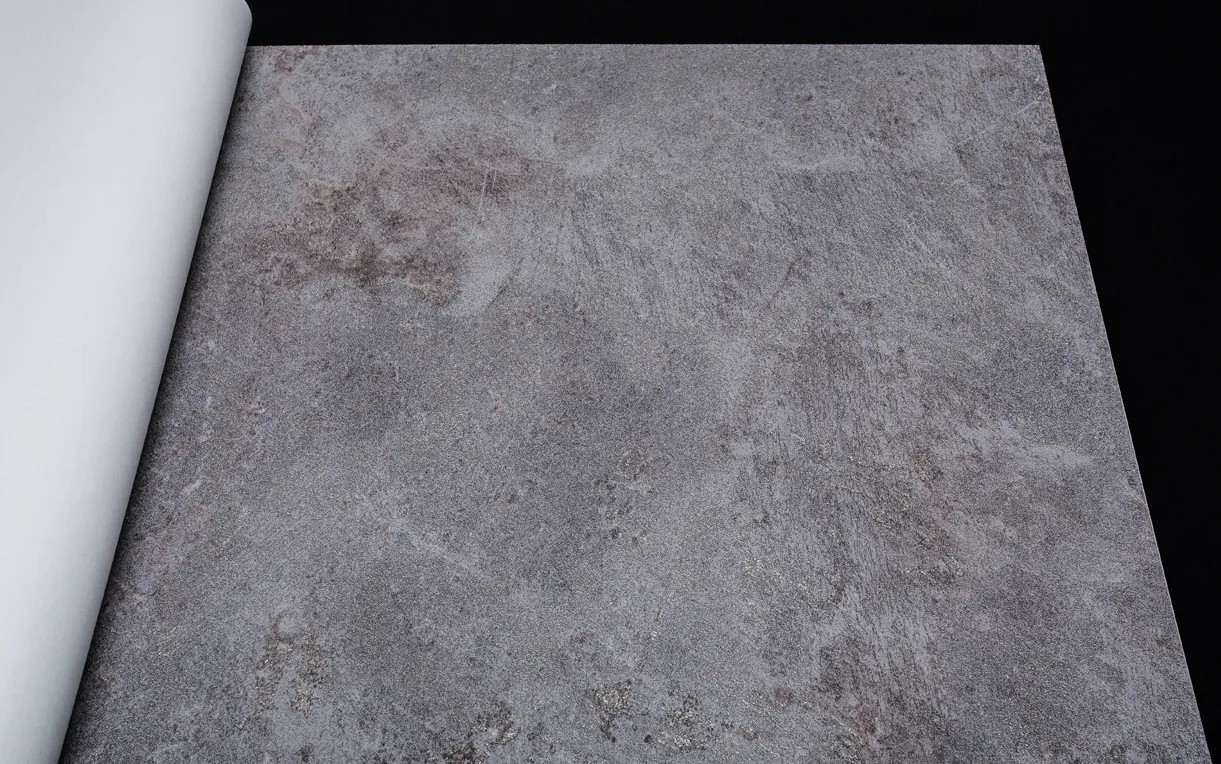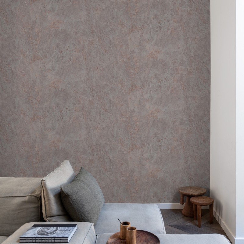 Papel tapiz vinílico en doble formato, diseño con una textura tipo terra con efecto desgastado ligeramente veteado.