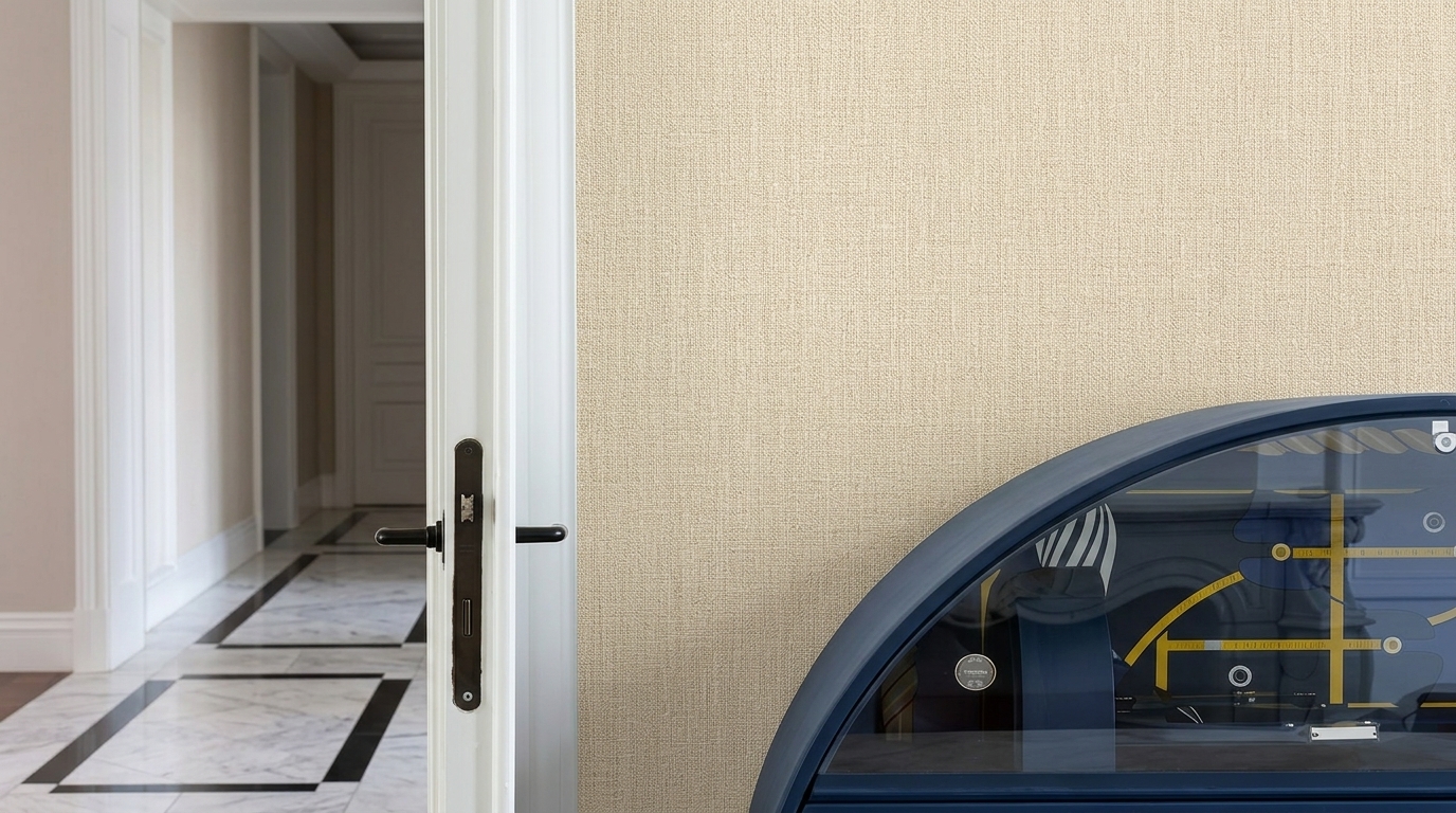 Papel tapiz vinílico, texturado con efecto textil tipo lino.