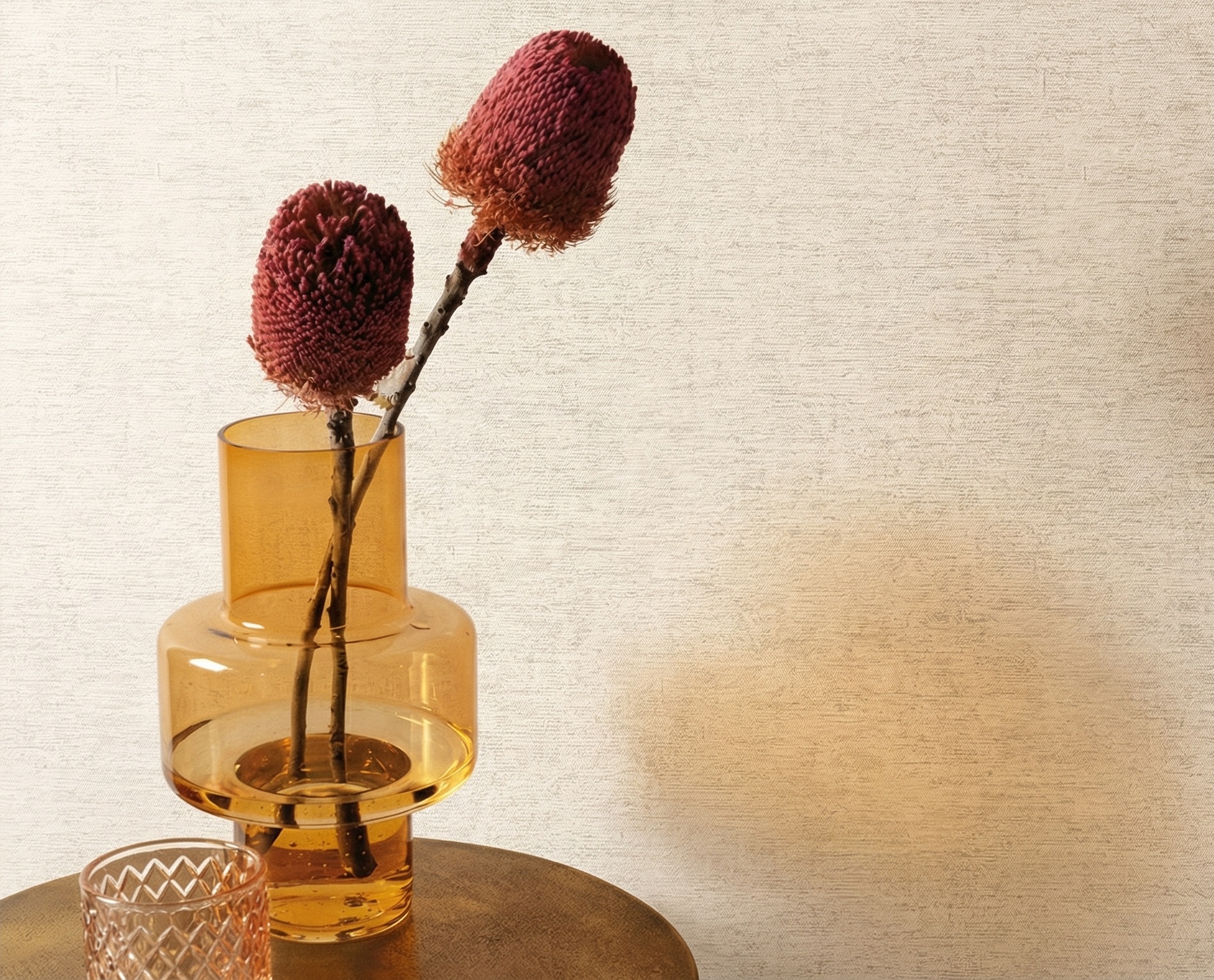 Papel Tapiz vinílico, texturado, este diseño posee un efecto estriado y desgastado con un aire atemporal con una paleta neutra