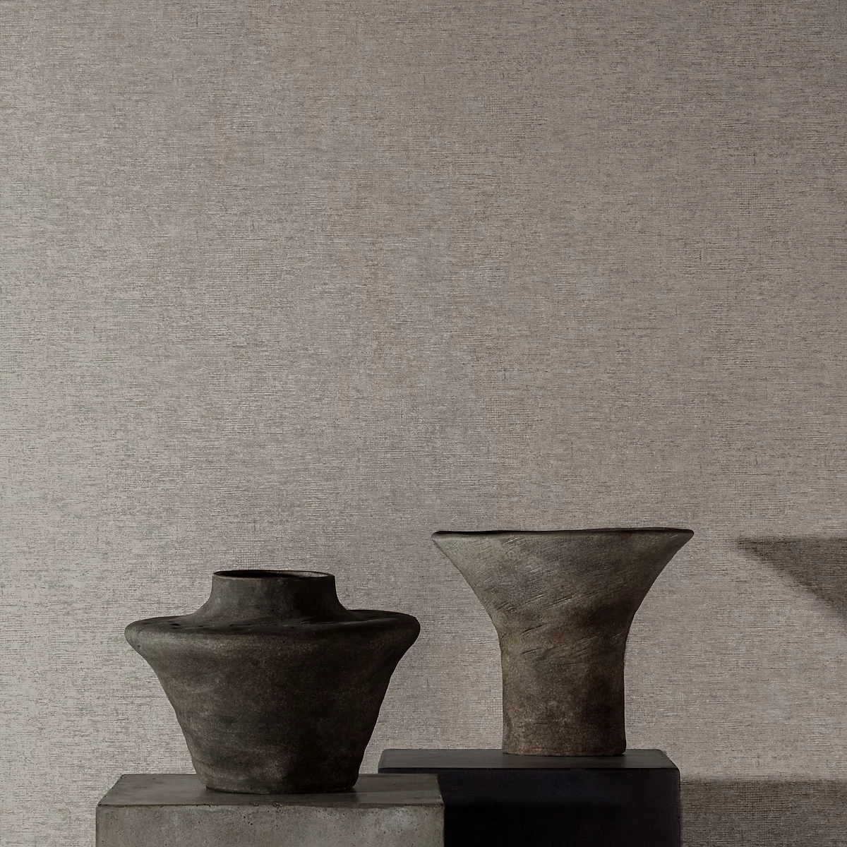 Papel Tapiz vinílico, texturado, este diseño posee un efecto estriado y desgastado con un aire atemporal en tonos marrón grisáceos