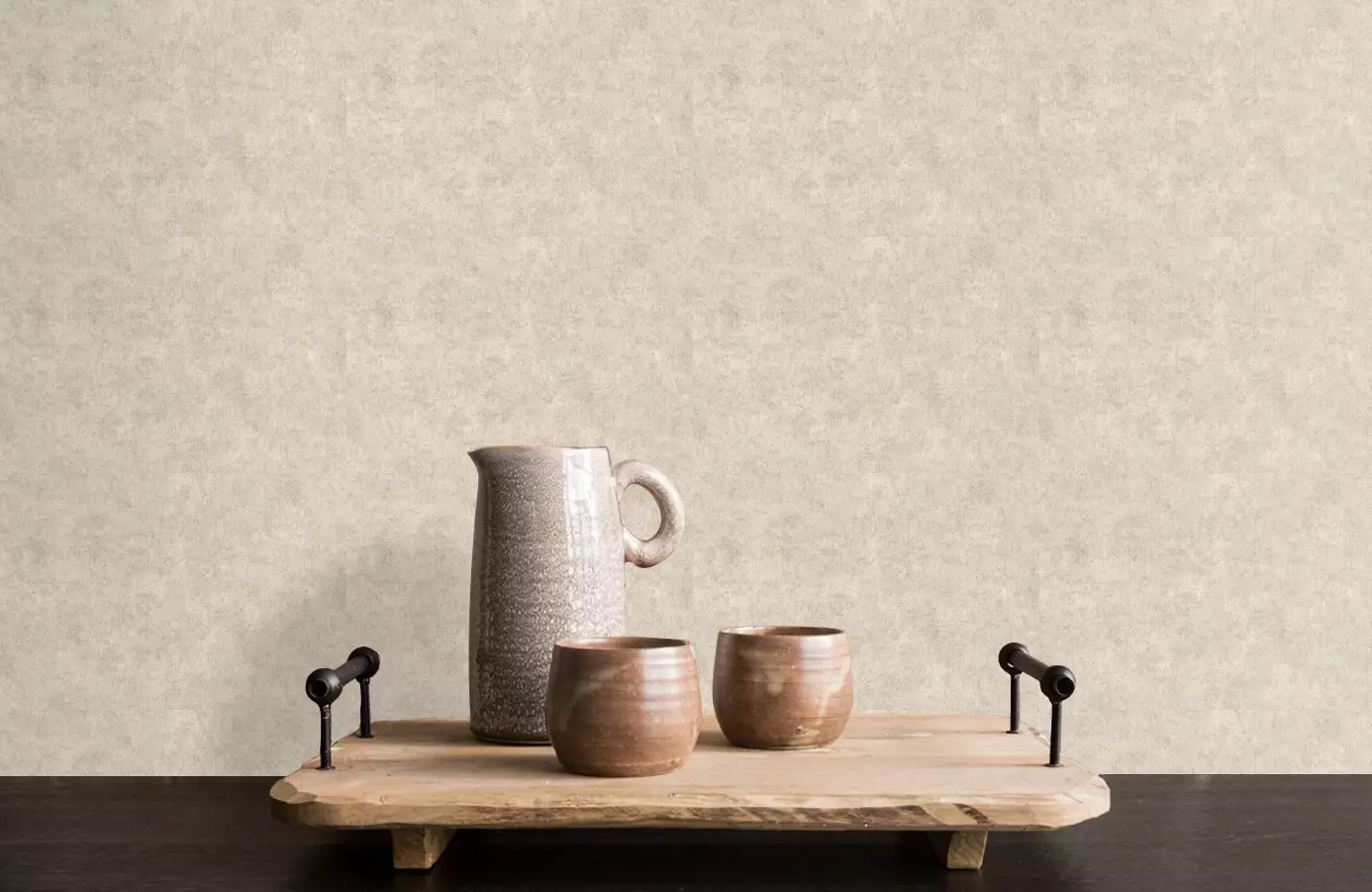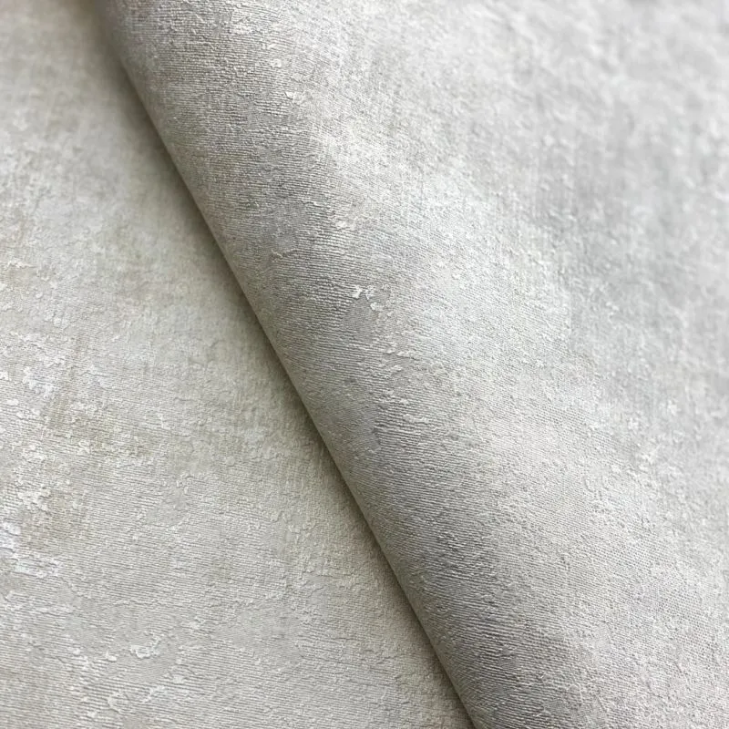 Papel tapiz vinílico en doble formato, diseño con una textura tipo terra con tonos gris verdosos.